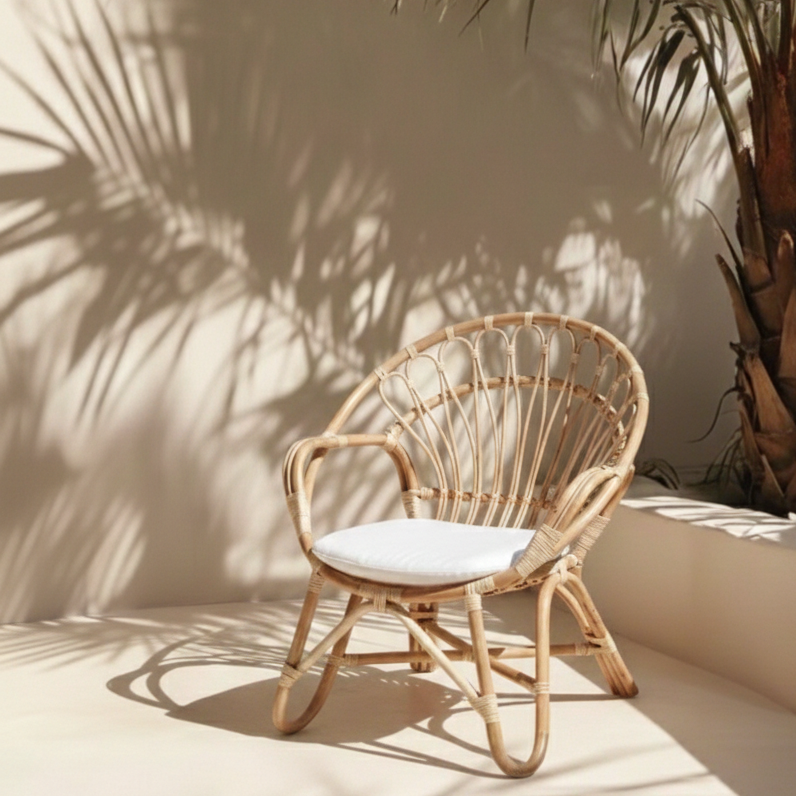 The Selarus Chair — Sculptural Rattan Seating for Calm, Design-Led Interiors