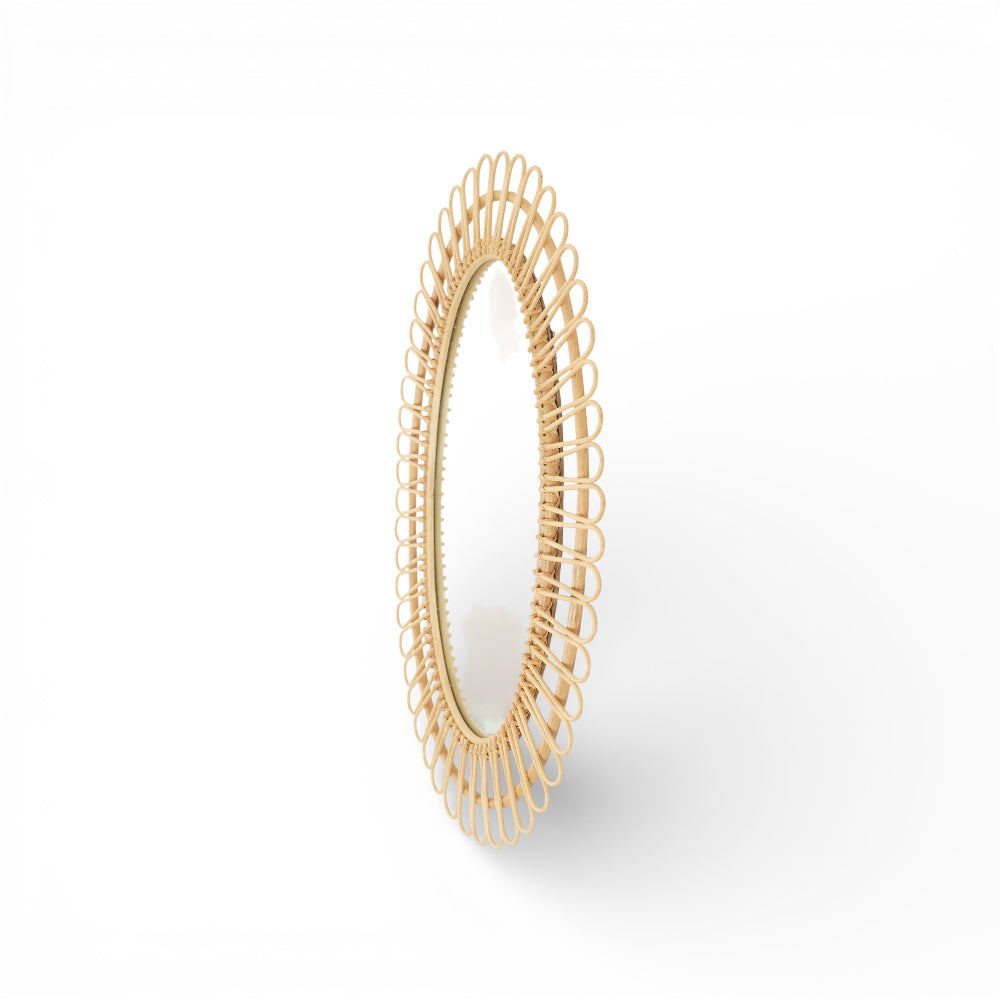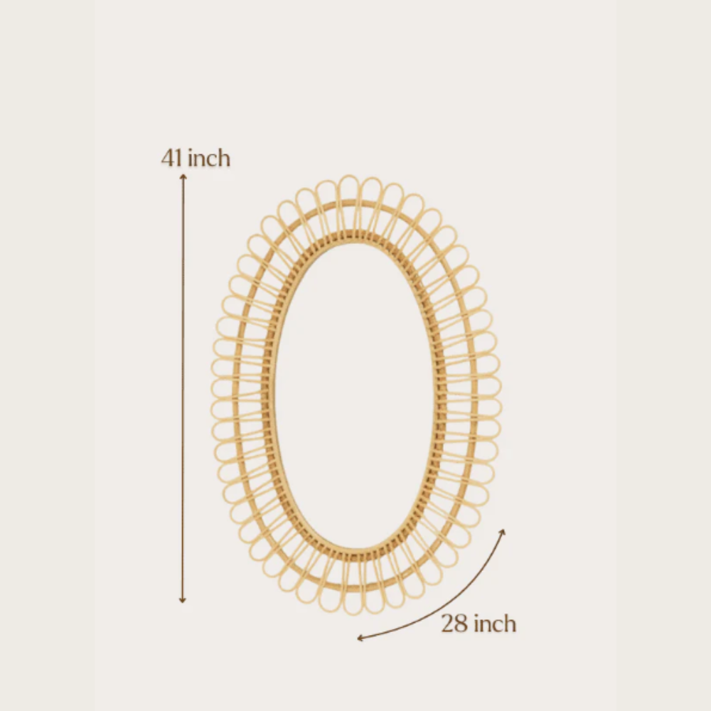 A simple yet classy mirror can add so much depth to your plain walls. Our floral wall mirror with an intricately carved frame is a display of beauty and local craftsmanship. Made from pre-seasoned rattan, this oval-shaped mirror for home is a functional and decorative addition to any room.