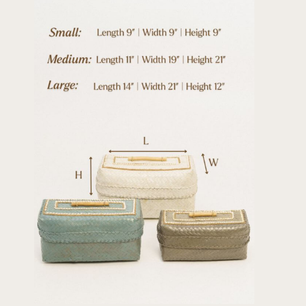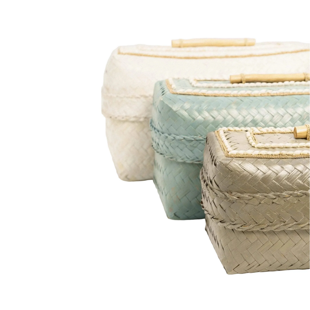The Peek-a-boo series of bamboo boxes features rectangular wide-based storage units with bamboo stick handles to open the lid. The top has delicate white shells for decorative purposes, uplifting the look of the storage boxes. They are eco-friendly, functional and stylish must-haves at your home.