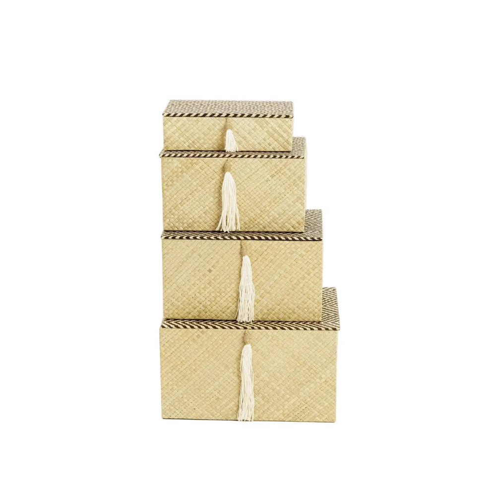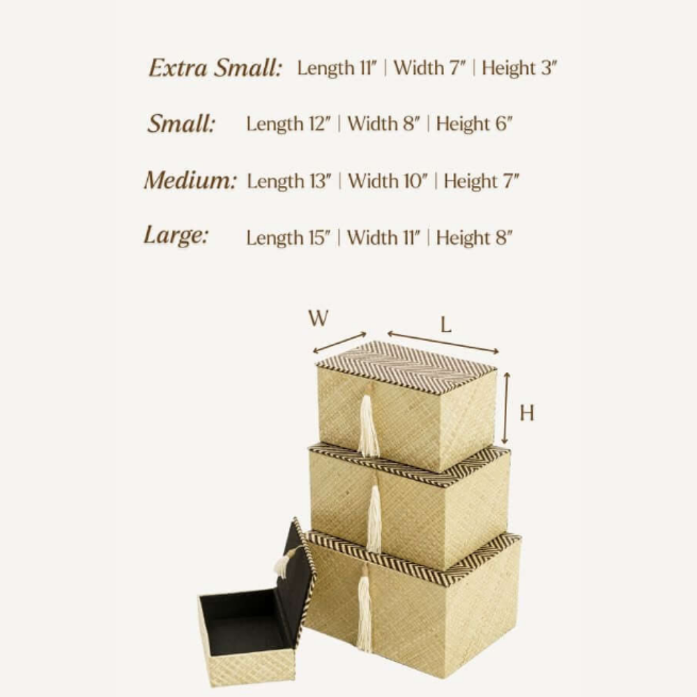 Keep your space clutter-free with this handcrafted storage box made from natural pandan material. Available in four sizes, its simple design features a textured surface like woven mats, offering a rustic charm. The plain beige colour adds an earthy touch that complements any decor.