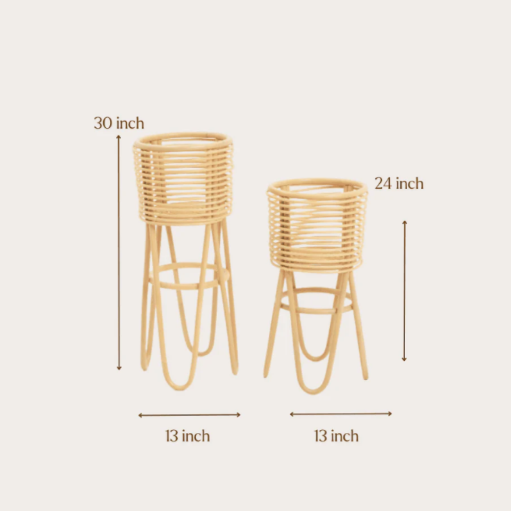 Our Tripod Planter Stands are perfect to bring a part of nature into your home or office. Handcrafted from renewable rattan, it is strong, durable and handwoven. Available in two sizes, one slightly shorter than the other, you can place them together to create a complimenting display in your balcony corner.